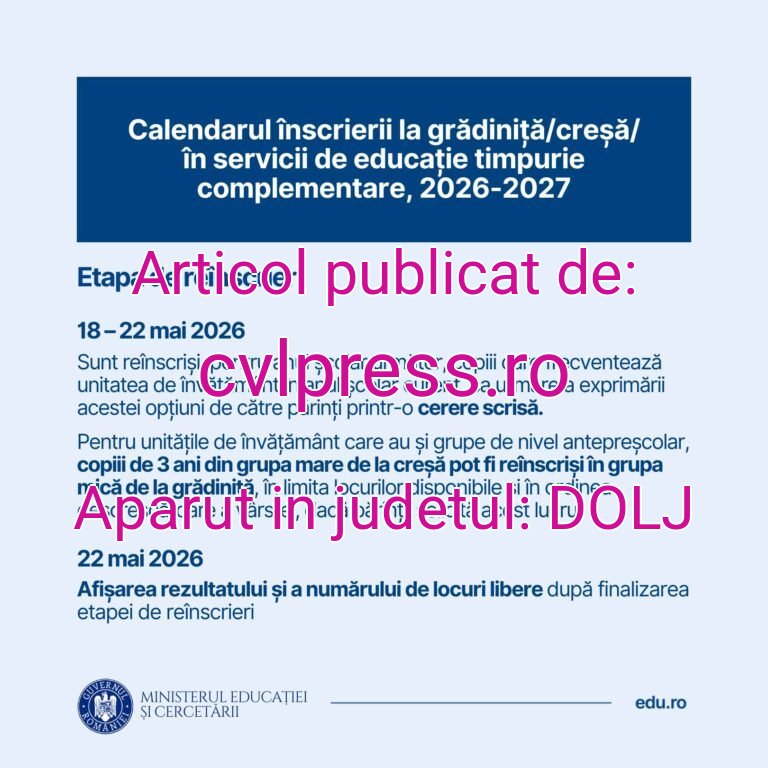 Sursa: https://cvlpress.ro/21.04.2026/s-a-stabilit-calendarul-inscrierii-la-cresa-si-gradinita/