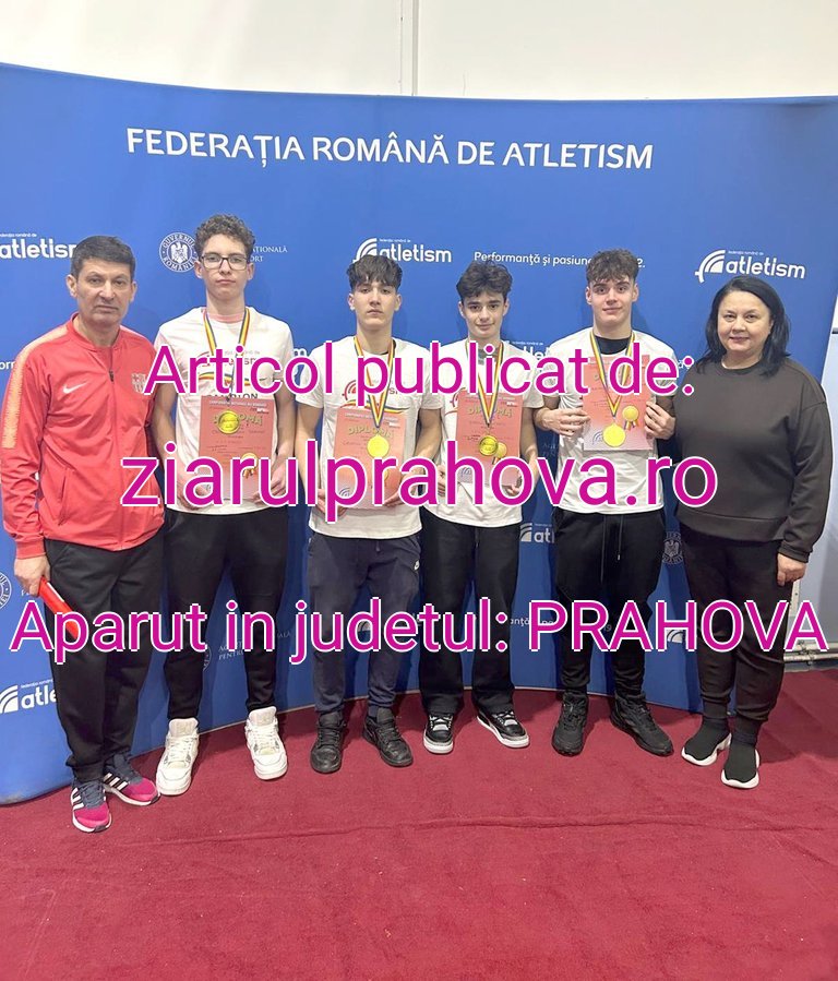 Săptămâna trecută, Sala de atletism „Ioan Soter” din cadrul Complexului Sportiv „Lia Manoliu” din Capitală a fost gazda Campionatului Național, rezervat categoriei U18!Atleții de la CSS Ploiești, pregătiți de profesorii Maria Andrei și Florin Andrei, au avut o evoluție remarcabilă, reușind să obțină două medalii. În prima zi, ștafeta 4 x 200 m băieți, în componența Ștefan Moisoiu – Cristian Creangă – Alexandru Tudorache – Georgian Lepuș, a reușit cu timpul de 1.30.25 min. să intre în posesia medaliilor de aur și a titlului de Campion al României, devansând echipa care a ocupat locul 2 (CSM Reșița), cu 4 zecimi de secundă!În a doua zi a concursului, ștafeta 4 x 400 m băieți, în componența, Alexandru Tudorache – Georgian Lepuș – David Coman – Cristian Creangă, a reușit cu timpul de 3.24.10 min. să obțină medaliile de bronz, devansând echipa care a ocupat poziția a 4 -a, (LPS Petrache Trișcu Craiova) cu 7 sutimi de secundă! De menționat că în cele 2 ștafete a făcut parte câte un junior U16 ( la 4 x 200 m – Ștefan Moisoiu, la 4 x 400 m – David Coman) , ambii juniori aducându-și din plin contribuția la frumoasele rezultate obținute!În imediata apropiere a podiumului s-au mai aflat:Ștafeta 4 x 200 m fete, locul 4, în componența, Ștefania Cîrjan – Ana Maria Ștefan – Ioana Ioniță – Antonia Mihai, ștafeta 4 x 400 m fete, locul 4, în componența, Maia Ivănoiu – Ioana Ioniță – Ana Maria Ștefan -Antonia Mihai ( Maia Ivănoiu și Antonia Mihai, junioare U16), Cristian Creangă – locul 7 la 200 m, Georgian Lepuș – locul 8 la 200 m!