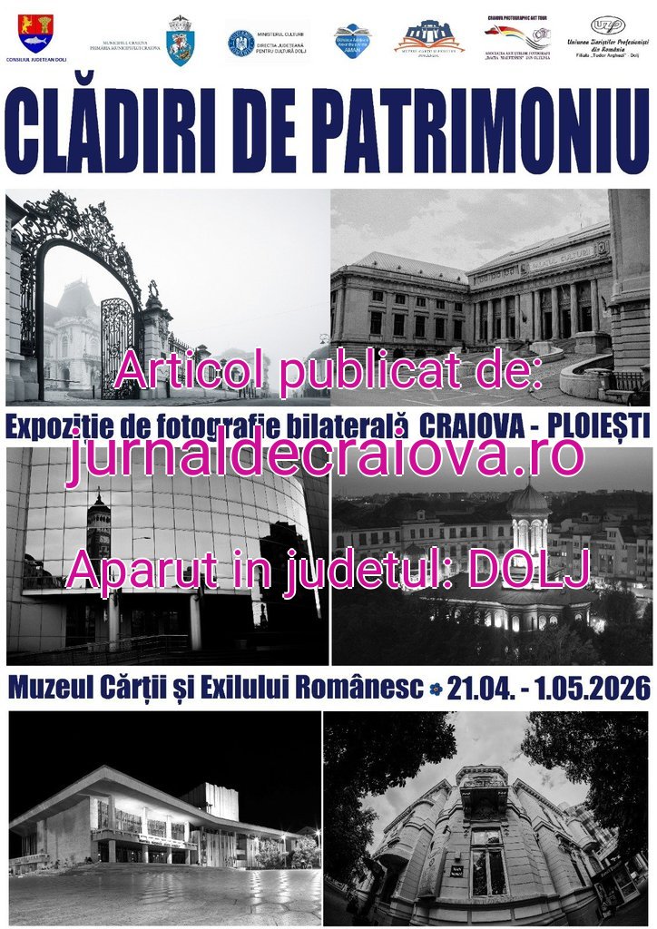 Craiova devine, pe 21 aprilie 2026, gazda unui eveniment cultural de referință dedicat memoriei urbane și valorii arhitecturale, prin vernisajul expoziției de fotografie bilateralăCraiova – Ploiești , intitulată„Clădiri de patrimoniu” . Programat marți, de la ora 18:00, laMuzeul Cărții și Exilului Românesc , evenimentul aduce în prim-plan frumusețea, fragilitatea și povestea clădirilor care definesc identitatea celor două orașe.