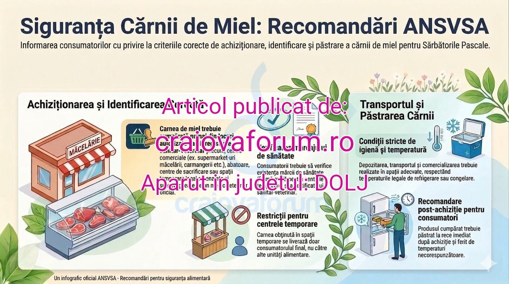 Autoritatea Națională Sanitară Veterinară și pentru Siguranța Alimentelor (ANSVSA) a emis recomandări pentru consumatori în ceea ce privește achiziționarea cărnii de miel înainte de Paște.
